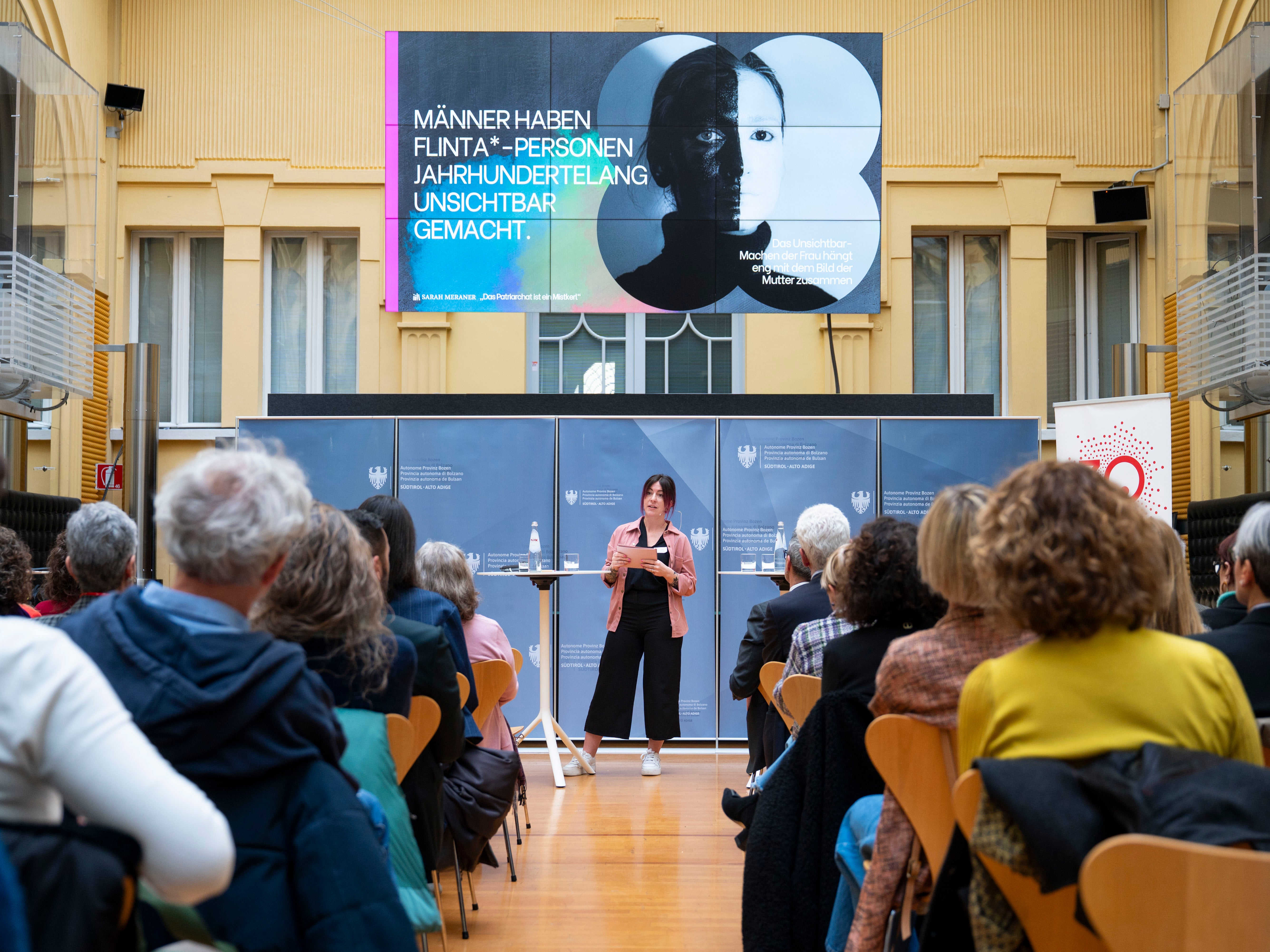 BOZEN (LPA). Das Land Südtirol strebt eine gerechte Darstellung der Geschlechter in den Medien und eine verstärkte Sichtbarkeit von Frauen in der öffentlichen Diskussion an. Deshalb haben der Landesbeirat für Chancengleichheit für Frauen und das Frauenbüro in Zusammenarbeit mit der Landesabteilung Informatik eine Expertinnendatenbank errichtet, die es ermöglicht, Fachfrauen aus jedem Bereich zu Veranstaltungen und Interviews einzuladen. Die Maßnahme, die im Rahmen des Gleichstellungsaktionsplans Ӕquitas und der Beteiligung an der Initiative "No Women No Panel" verwirklicht wurde, wurde am 2. März bei einer Netzwerkveranstaltung im Innenhof des Palais Widmann vorgestellt.
