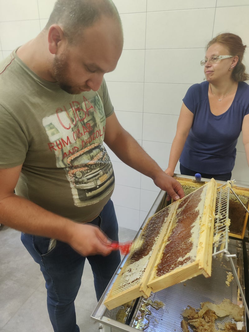 - Honigschleudern: Das ist der Moment, wo sich die Arbeit vieler Monate bezahlt macht. Der Imker holt den Honig aus dem Bienenstock und füllt ihn ab. (Foto: Fachschule Laimburg/Klaus Blasbichler) » [IMG 3 MB]