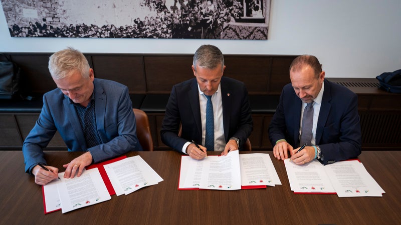 - Strategische Zusammenarbeit gefestigt (von links): KlimaHaus-Generaldirektor Ulrich Santa, Energielandesrat Peter Brunner und GSE-Präsident Paolo Arrigoni unterzeichnen die neue Rahmenvereinbarung, die die Energiewende in Südtirol vorantreiben und die Erreichung der Netto-Klimaneutralität bis 2040 fördern soll. (Foto: LPA/Fabio Brucculeri). » [IMG 1 MB]