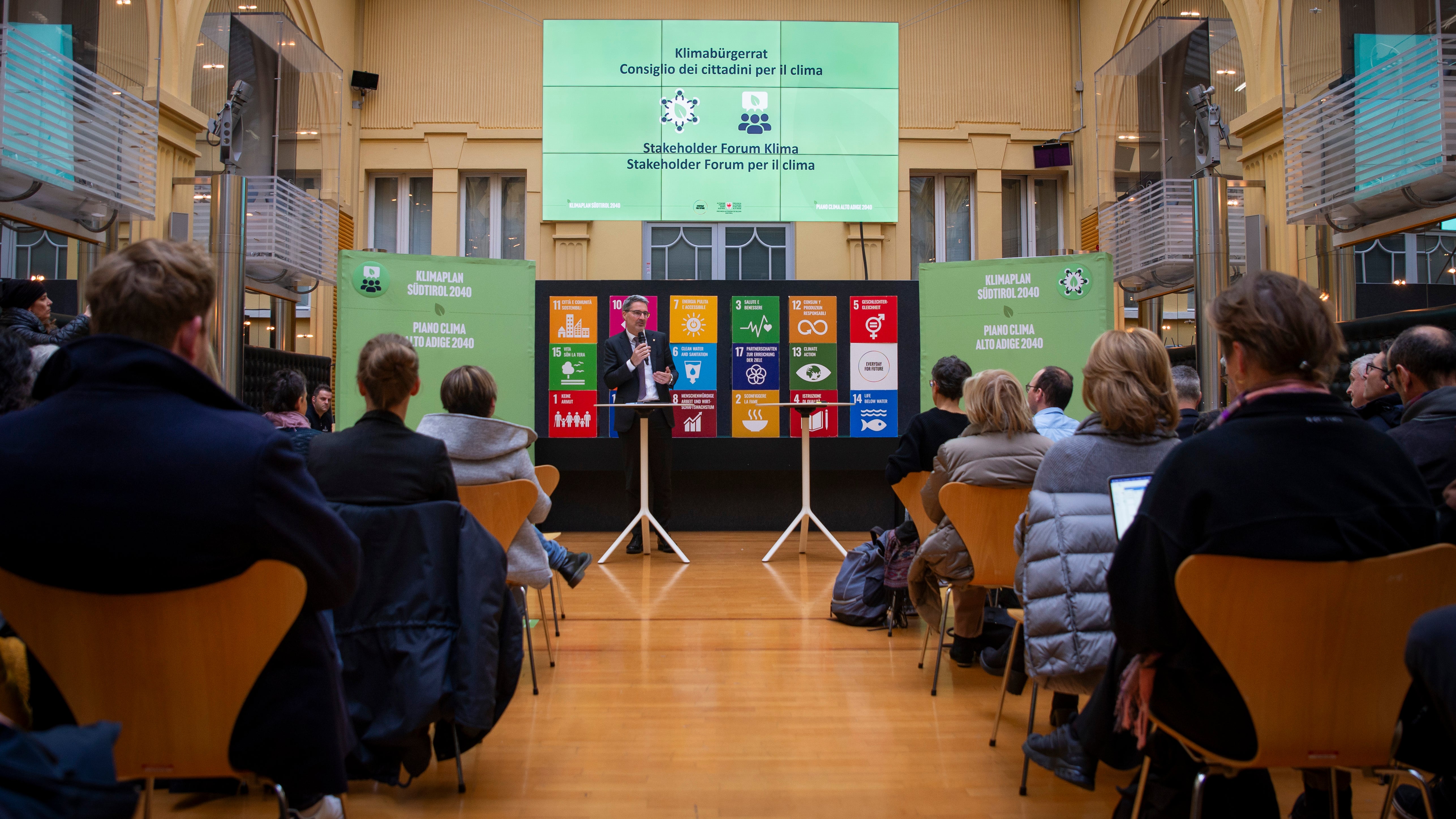 Das Stakeholder Forum Klima hingegen bringt Organisationen und Interessenvertretungen, die eine Rolle auf dem Weg zur Klimaneutralität spielen, zusammen. 75 Mitglieder aus den Bereichen Gewerkschaften, Kultur, Soziales, Umwelt und Wirtschaft sind im Stakeholder Forum Klima vertreten. Die Arbeiten werden in fünf Fachgruppen stattfinden, die sich – wie der Klimabürgerrat – mit den Themen Mobilität, Wohnen, Energie, Konsum und Produktion, Ernährung und Landnutzung befassen. Ziel ist es, verschiedene Positionen und Interessen in den Klimaplan zu integrieren und Empfehlungen für die weitere Strategie abzugeben. "Die Weichen Richtung Klimaneutralität sind gestellt. Als Multiplikatoren spielen die Stakeholder - neben den Bürgerinnen und Bürgern - eine wichtige Rolle für die erfolgreiche Umsetzung des Klima Plans Südtirol 2040", unterstreicht Ulrich Santa, Direktor der Agentur für Energie Südtirol – Klimahaus, die für die Organisation und Gestaltung der beiden Beteiligungsformate verantwortlich zeichnet.