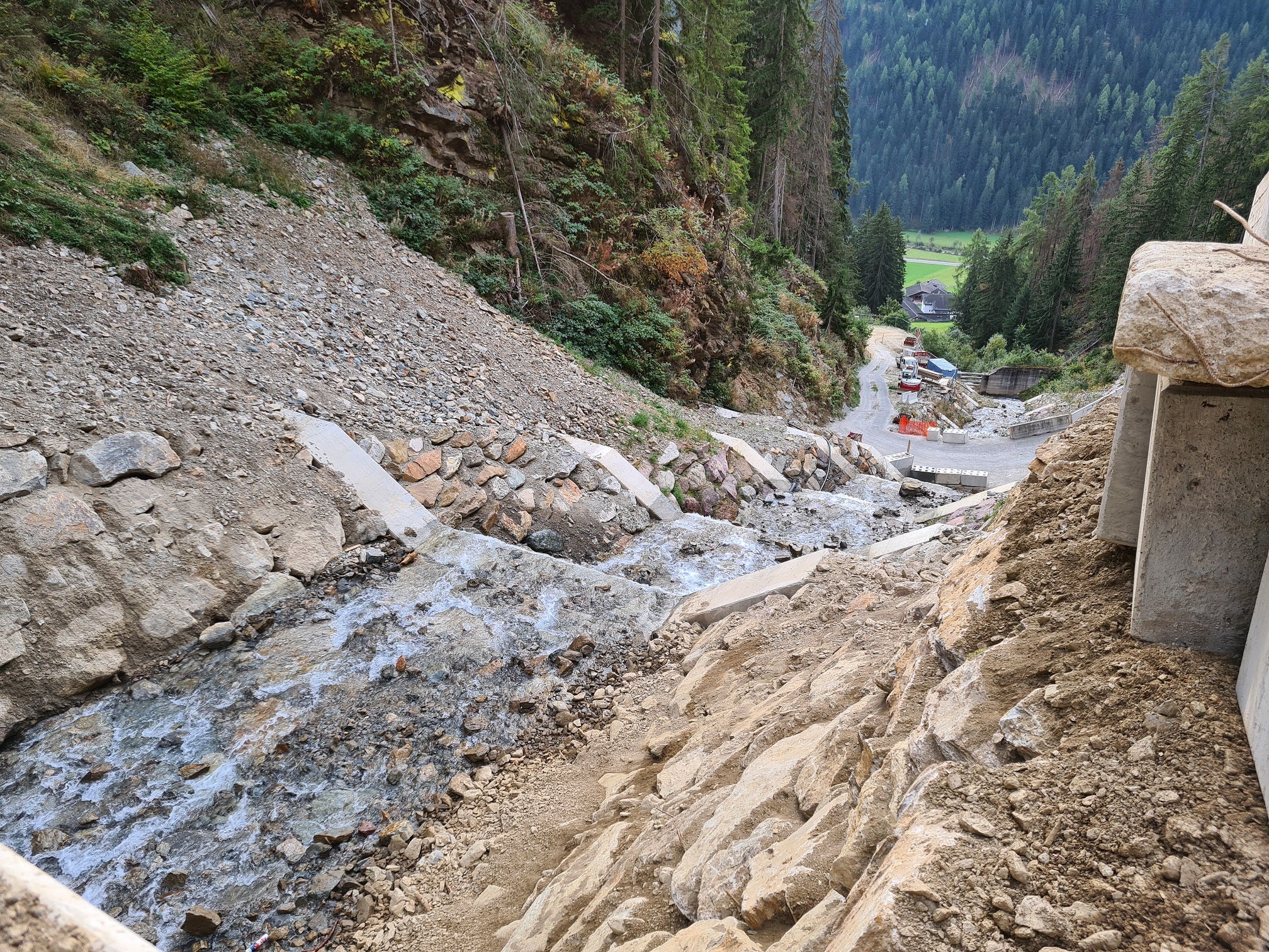 Sperren aus ökologischem Beton im Messnerbach in Ulten