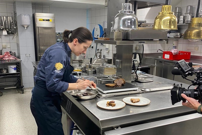 - Madlen Hackl bereitet ihr Lieblingsgericht zu: Tiroler Kalbl – ganzheitlich und nachhaltig verwertet, also „Nose to Tail“. (Foto: Euregio) » [IMG 238 kB]