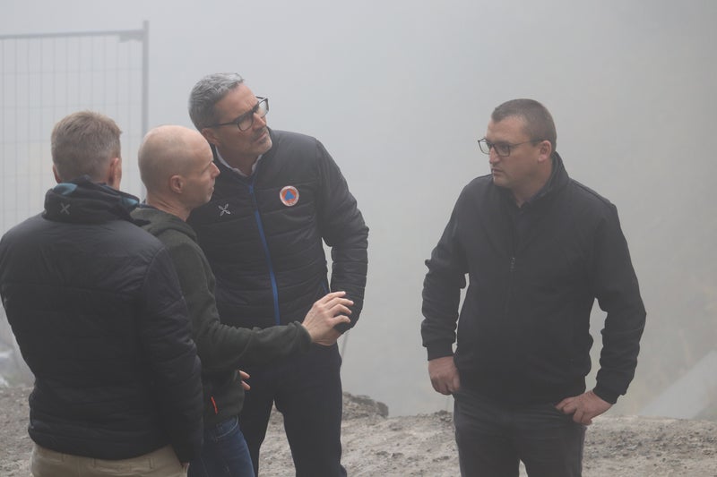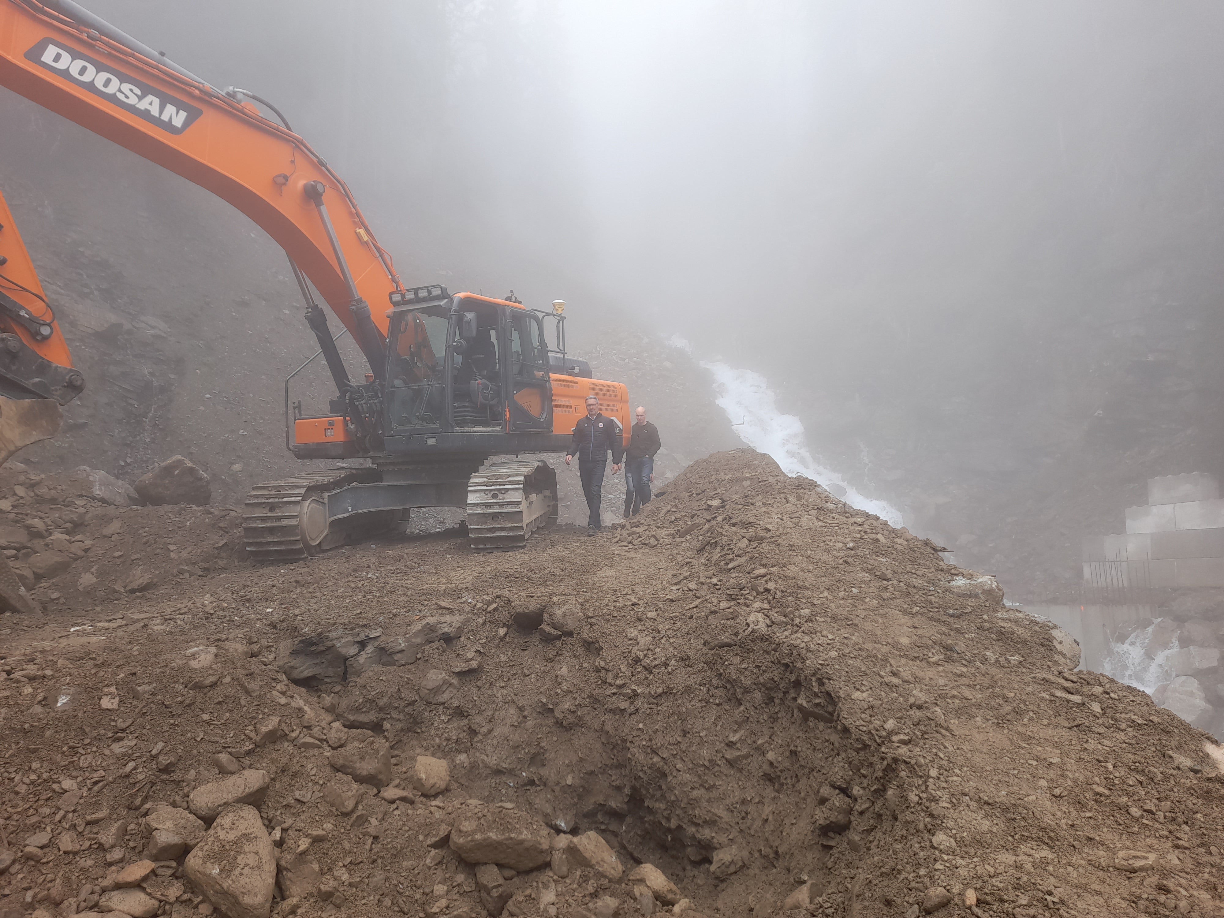 - Baustelle Messnerbach in St. Nikolaus in Ulten mit widrigen Bedingungen: Landeshauptmann Kompatscher und Amtsdirektor Thomas Thaler bei der Besichtigung (Foto: LPA/Maja Clara) » [IMG 3 MB]