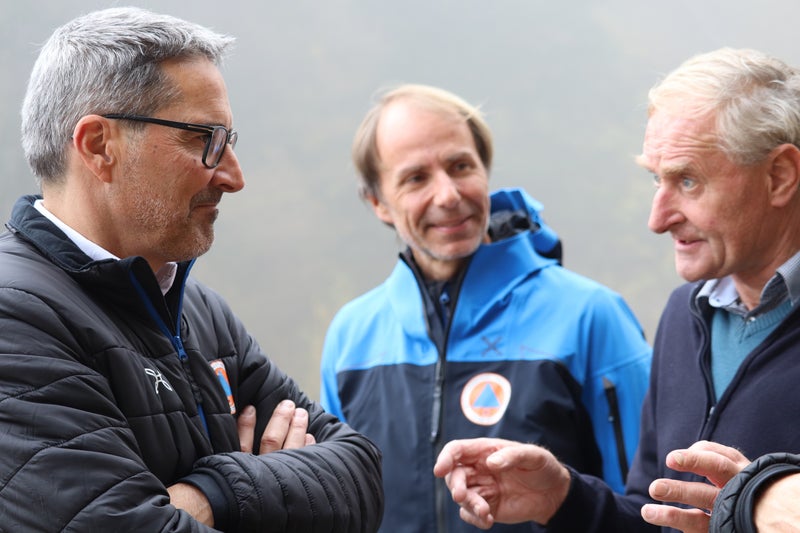 - Dank an Wildbachverbauung und Bevölkerungsschutz: Stefan Schwarz, Bürgermeister der Gemeinde Ulten (ganz rechts): "In meiner Gemeinde hat es vergangene Woche über 100 Liter pro Quadratmeter geregnet - und kein Stein ist dank Schutzbauten auf die Straßen niedergegangen" (Foto: LPA/Maja Clara) » [IMG 1 MB]