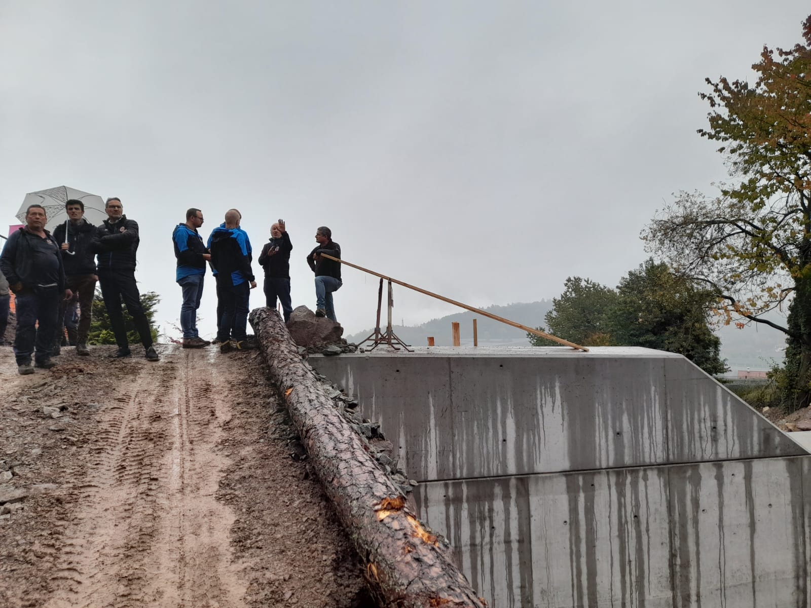 Der Lokalaugenschein umfasste auch zwei Baustellen in der Gemeinde Tisens: Im Tisenerbach verbaut derzeit die Mannschaft mit Vorarbeiter Michael Zöschg das Bachbett neu, da Verbauung und Uferschutz sanierungsbedürftig waren. Mit der Errichtung einer neuen Künette, einem gemauerten Kanal aus Zyklopensteinen, wird der Hochwasserschutz erhöht. Die Arbeiten haben im September begonnen und werden voraussichtlich im Frühjahr abgeschlossen sein, erläuterte Bauleiter Christian Kofler. Am Steineggerbach, auch Försterbach genannt, hat die Mannschaft um Vorarbeiter Erwin Marth eine Geschieberückhaltesperre errichtet. Die neue, etwa sechs Meter hohe Rückhaltesperre aus Beton soll nahezu das gesamte verbleibende Geschiebe auffangen und somit die Gefahr für den darunterliegenden Siedlungsbereich entschärfen, erklärte Bauleiter Martin Pfitscher. Mit diesen Baumaßnahmen wird die Verbauung des Ober- und Mittellaufs des Steineggerbachs abgeschlossen, fasst der Direktor des Landesamtes für Wildbach- und Lawinenverbauung Süd Thomas Thaler zusammen.